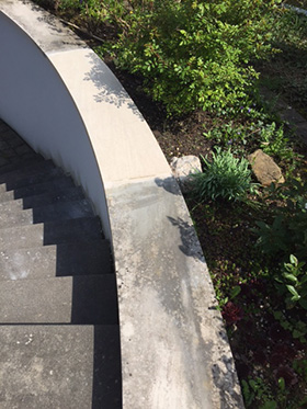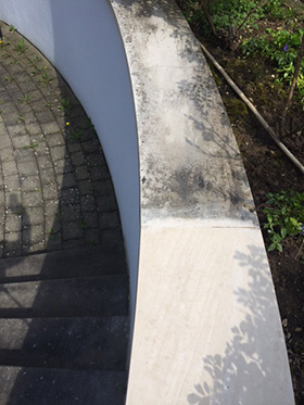 Mauerabdeckung aus Kalk - Sandstein. Vor und nach unserer Behandlung.